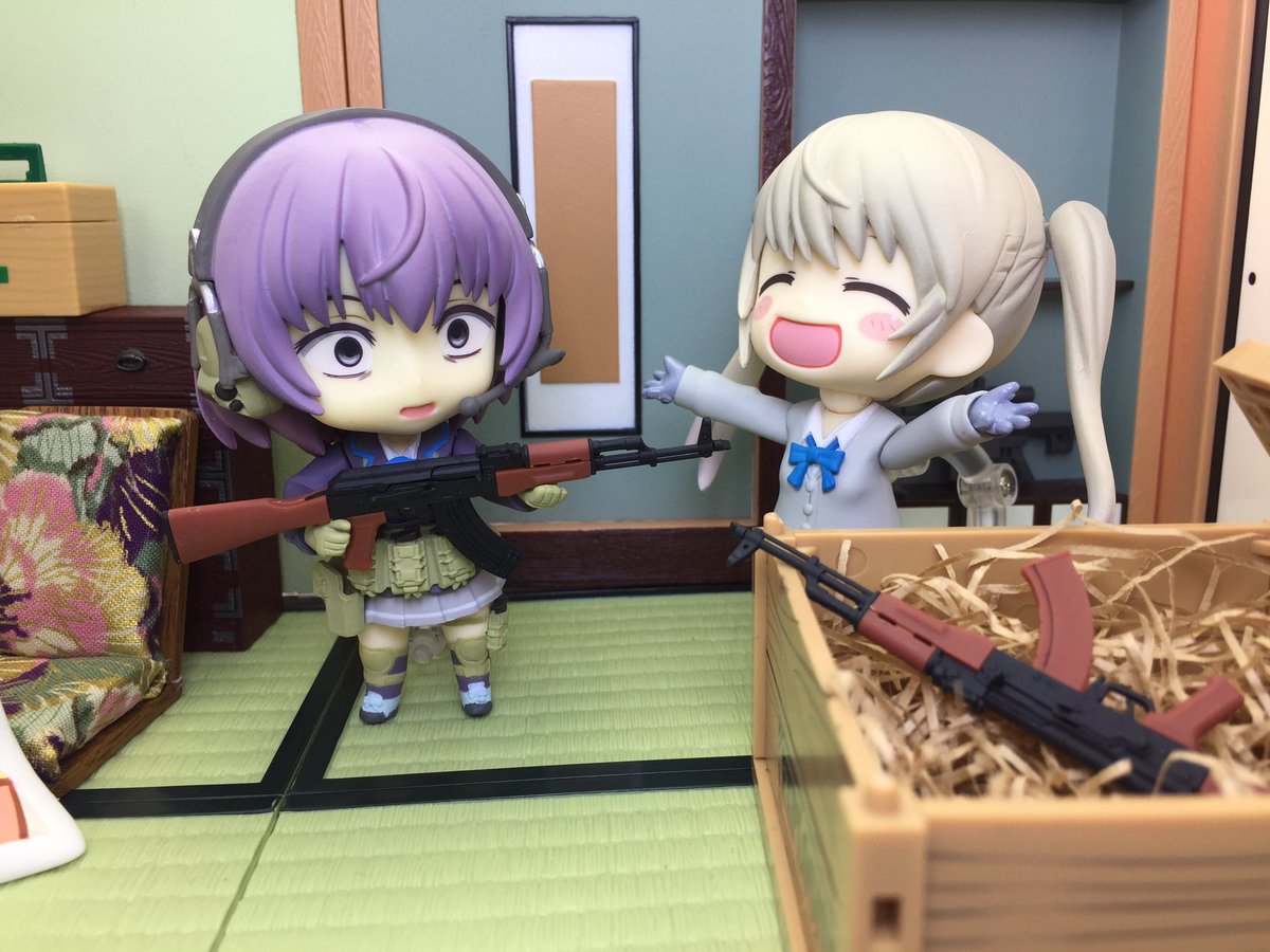 未世ちゃん、お誕生日おめでとう🎂 プレゼントはなんと、傑作アサルトライフルのAK-47を二丁だよー! #3月21日は朝戸未世の誕生日 #リトルアーモリーを装備