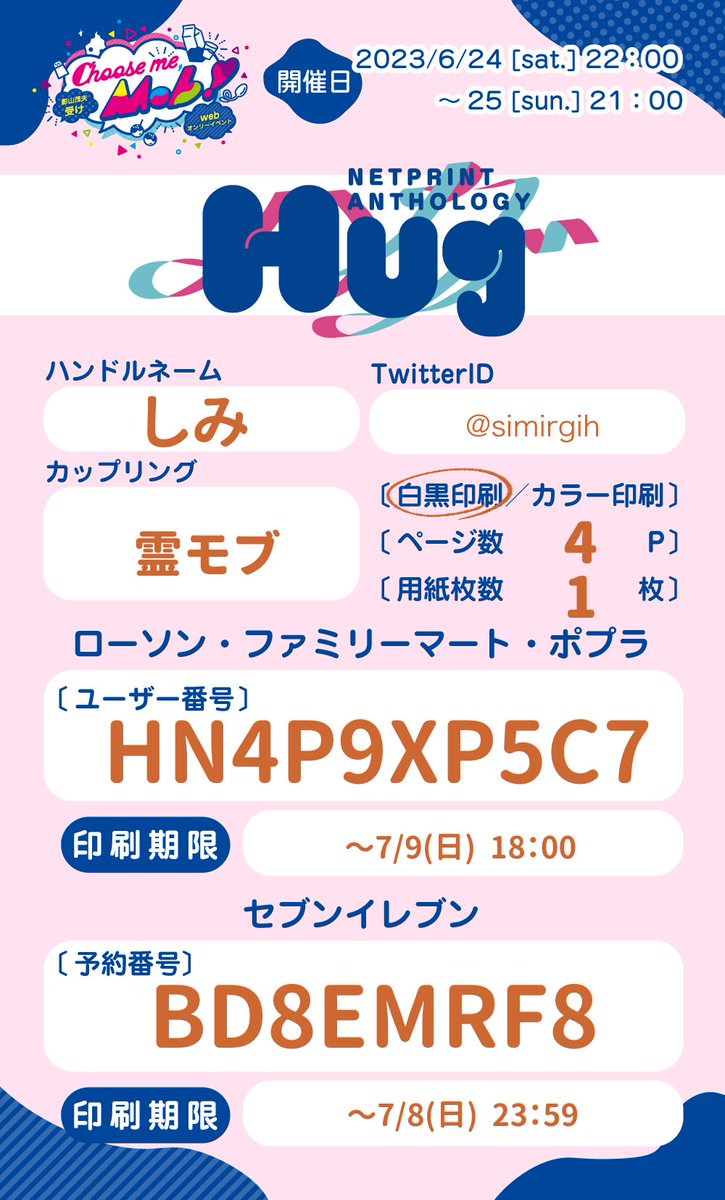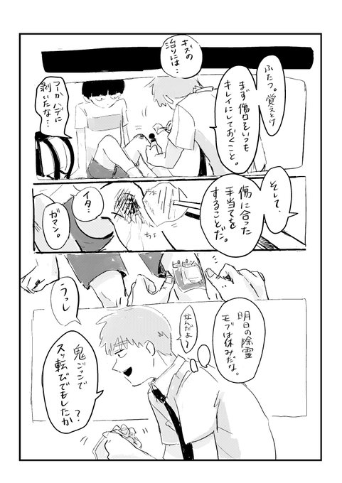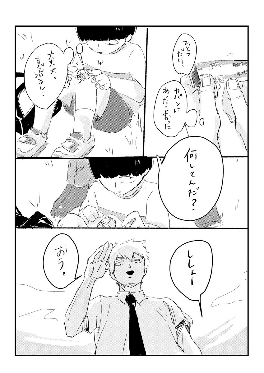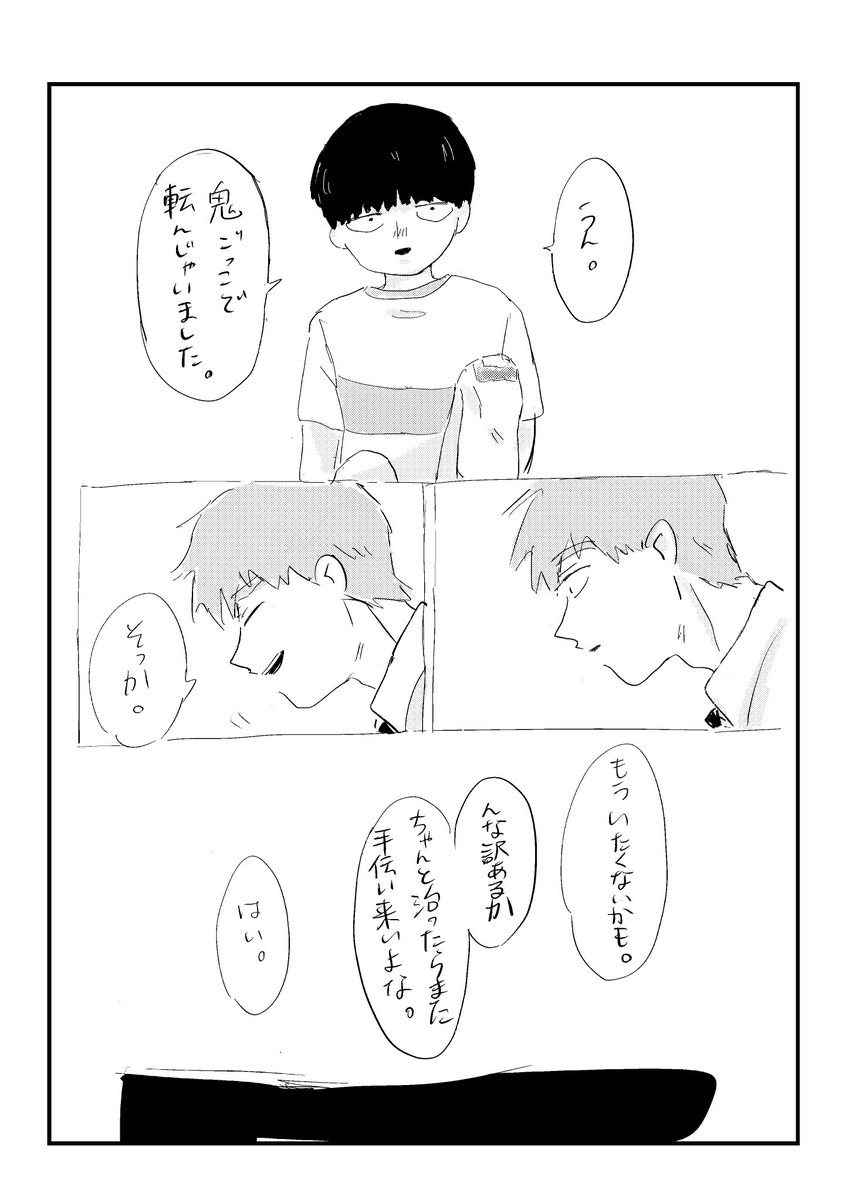 7 16 大遅刻すみません;;ハグアンソロ参加させていただきます。ししょモブらくがき2pと霊モブ漫画2pで1枚出てきます〜よろしくお願いします💐#ちゅーもぶアンソロジー 23/07/01 19:52