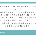 趣味は人によって求めることがバラバラなので、不用意に他と比べないことが大切なのかなと僕は思います。絵の枚数も、筆を取るタイミングも、自分のリズムで全然良いと思います。自分が楽しめることを第一に続けて行くのが良いのかなと思います。