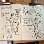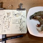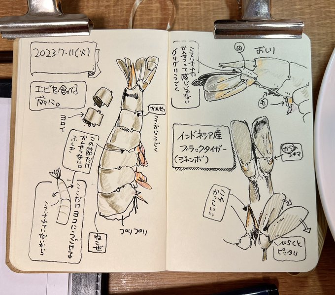 エビを食べる前にちょっとスケッチ。手にとって動かせるから発見が多い。