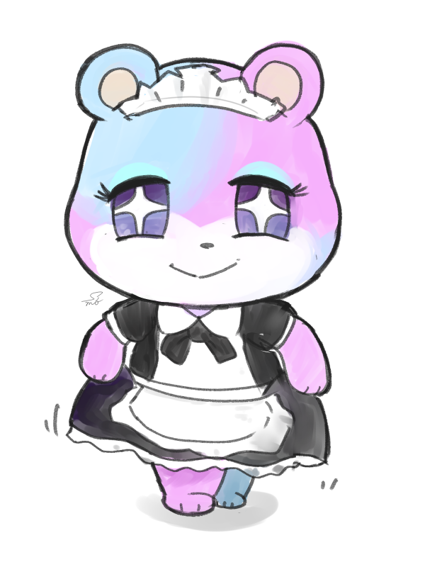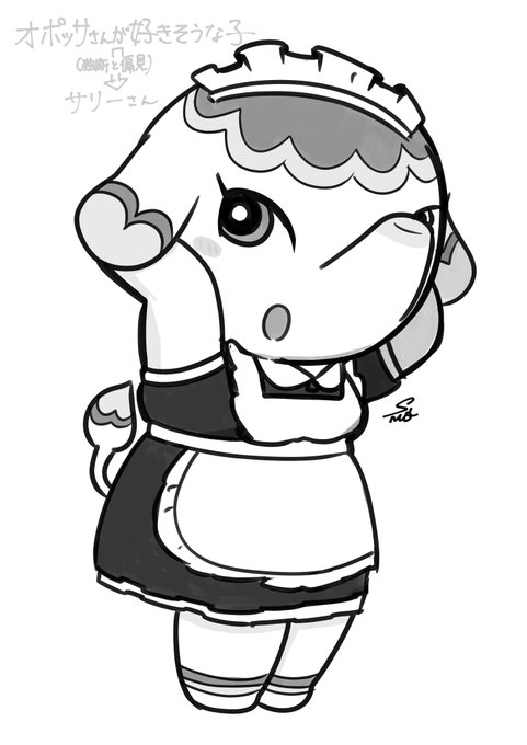 @oPoSa_4 大変お待たせしました…!オポッサさんが好きそうな子ということで、考えた結果どう森サリーさんをチョイス(ついでにメイド服) #私の嫌いな食べ物を当てた人に落書きを献上する