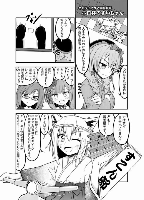 [ホロ杯のすいちゃん]【ホロライブコマ漫画劇場27】 ホロ杯面白かったです。すいちゃん優勝おめでとう。ただ、一番のダークホースは蕎麦屋さんだと思う。(存在感的な意味で) pixiv.net/artworks/10453… #漫画 #星街すいせい #白上フブキ #hololive #ほしまちぎゃらりー #絵フブキ