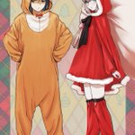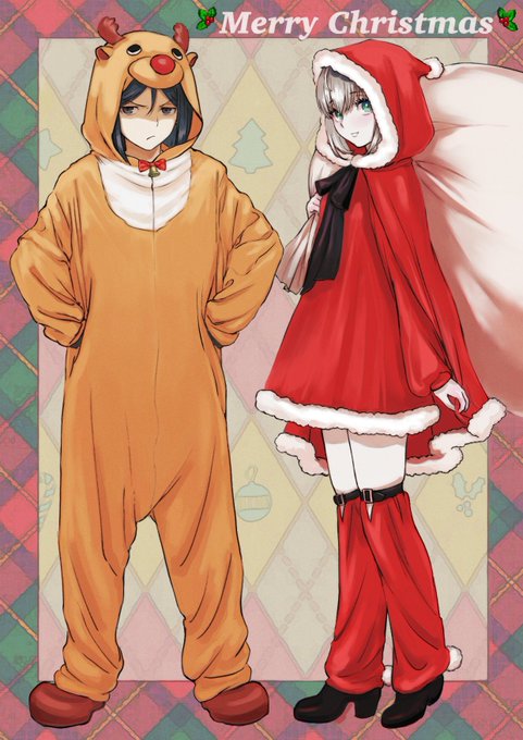 この前描いたウェイバー とグレイちゃんのお洋服の設定絵に色をつけました🎄