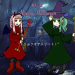 ハロウィンいろさな 背景は「Desktop wallpaper HD」というサイトからお借りしています。(問題があれば削除します) まゆげがズレてたので再投稿です #マギレコ #環いろは #二葉さな #いろさな #ハロウィンイラスト