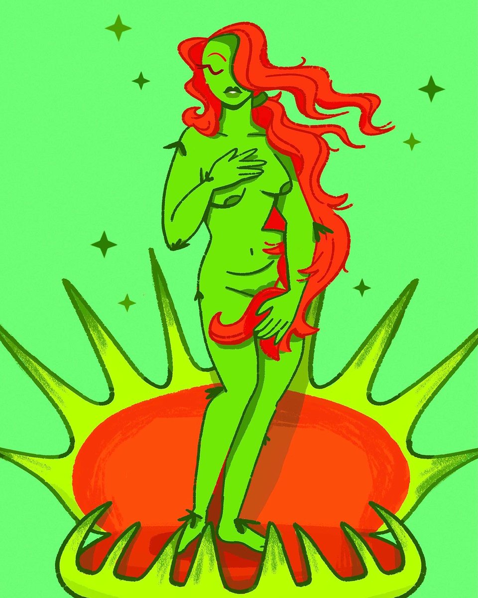 Day 12: Venus fly trap. 🪴🩸 drawing of Poison Ivy inspired by The Birth Of Venus by Sandro Botticelli #art #inktober #inktober2021 #illustration #poisonivy #dc #artwork #halloween