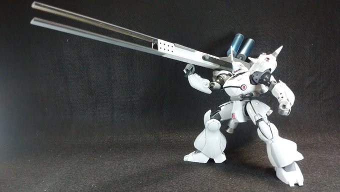 #今年作ったプラモ晒そうぜ 完成編 HGUCケンプファーをカラーリングアレンジ。 ヴァイス・ケンプファーとして組み上げました😊 大型武器のロングバレルレールキャノンは、プラ板の箱組メインで作製してます! オラザクにも応募しました。