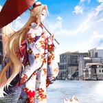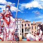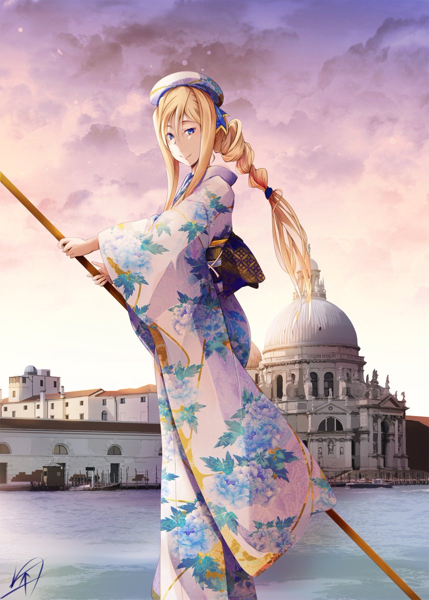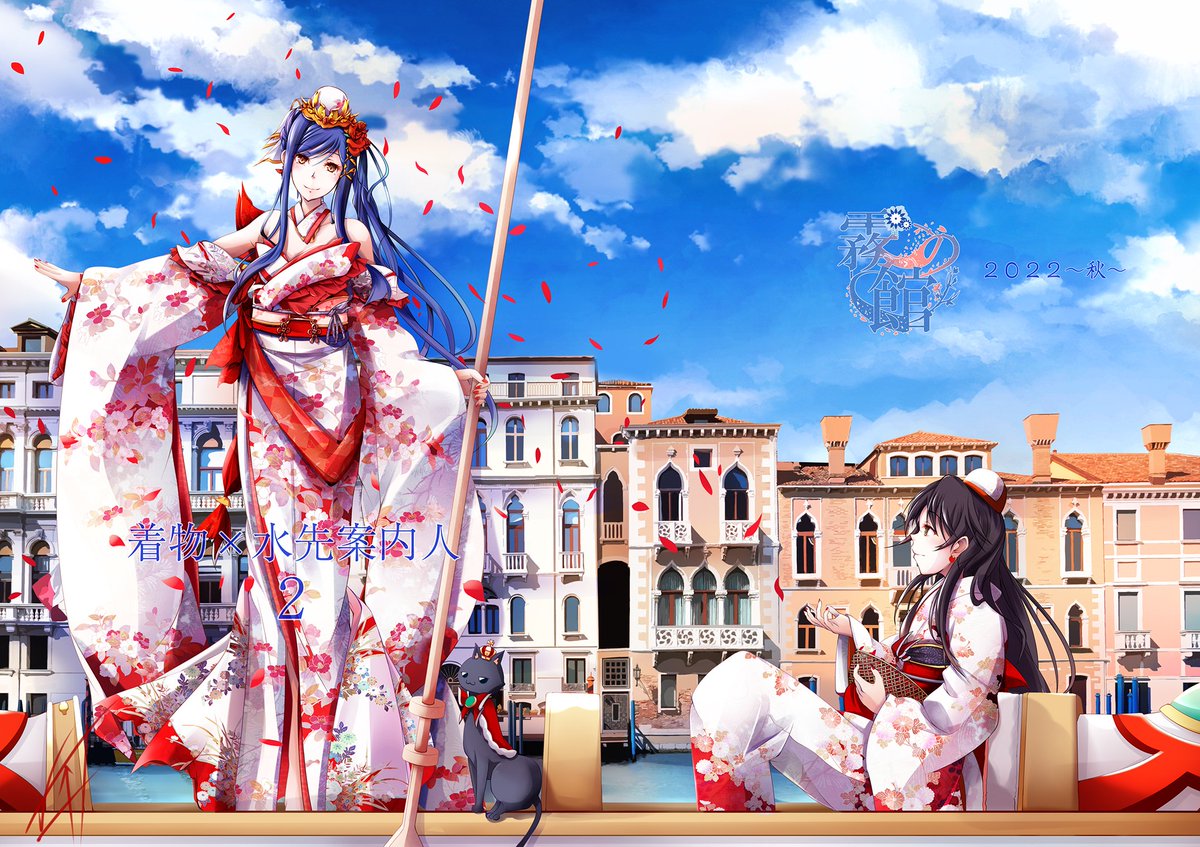 #今までで作画カロリーMAXの作品上げようぜ アリアカーニバルにて頒布した着物ARIA本の表紙!B4サイズ製作で 藍華・晃さん・ゴンドラ・大運河の街並み背景 個別に製作したのでカロリー高かった😅(足やゴンドラ全体も描いてあります)