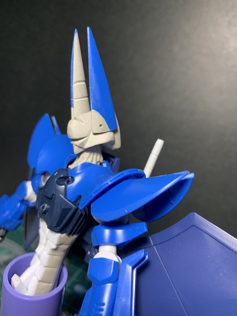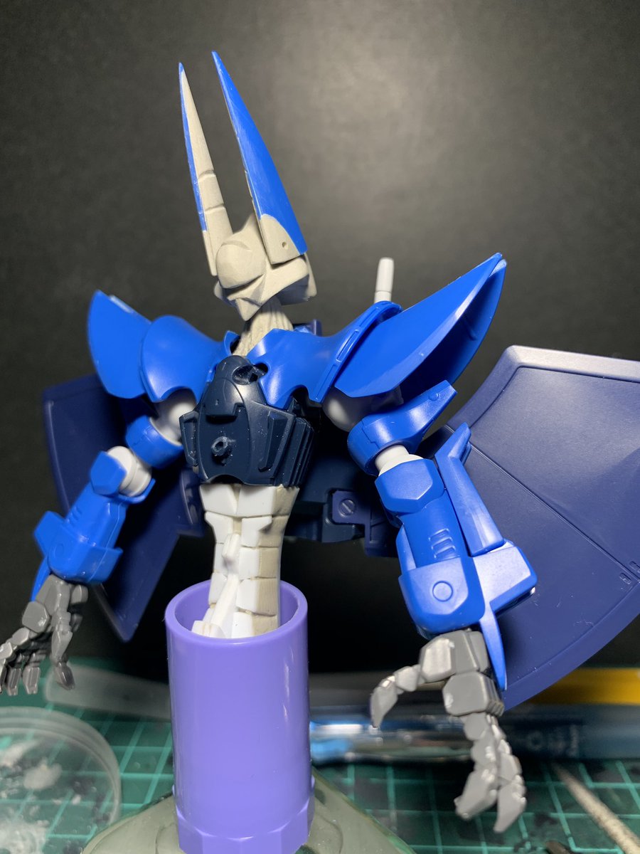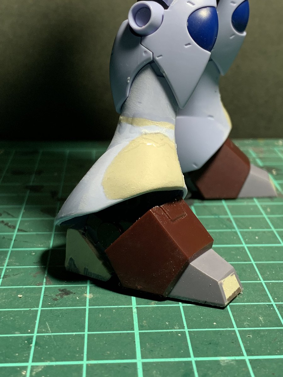 5 53 ガルバルディα。 脚部のパテ盛りと粗成型。 ガルバβの踵の形状を丸→角に変更しました。 19/01/30 22:29