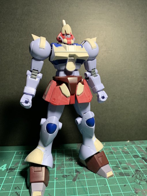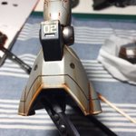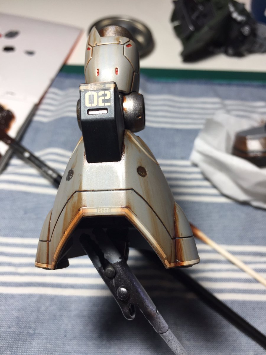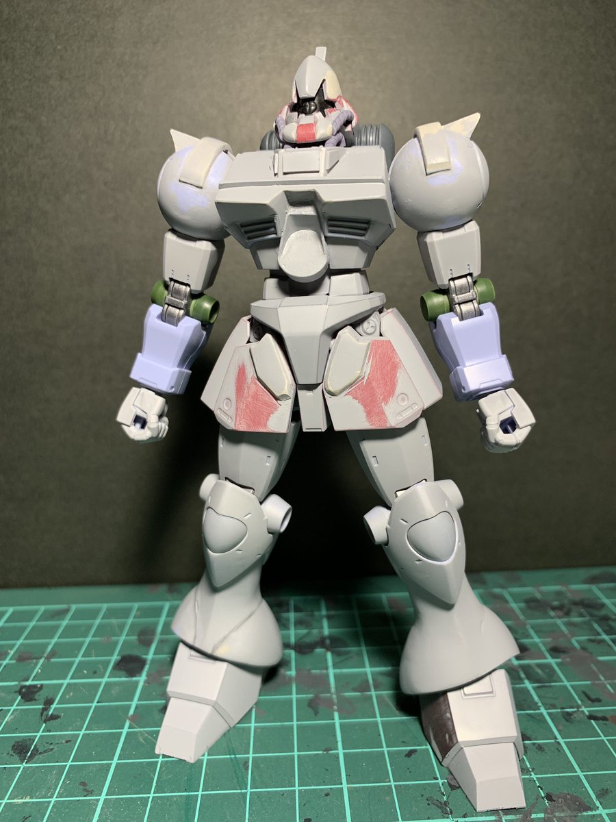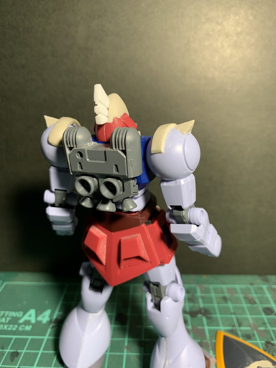 3 76 ガルバルディα。 捨てサフ後のキズ消し作業中です。 シールドの覗き穴の位置変更も行いました。 19/02/03 20:54