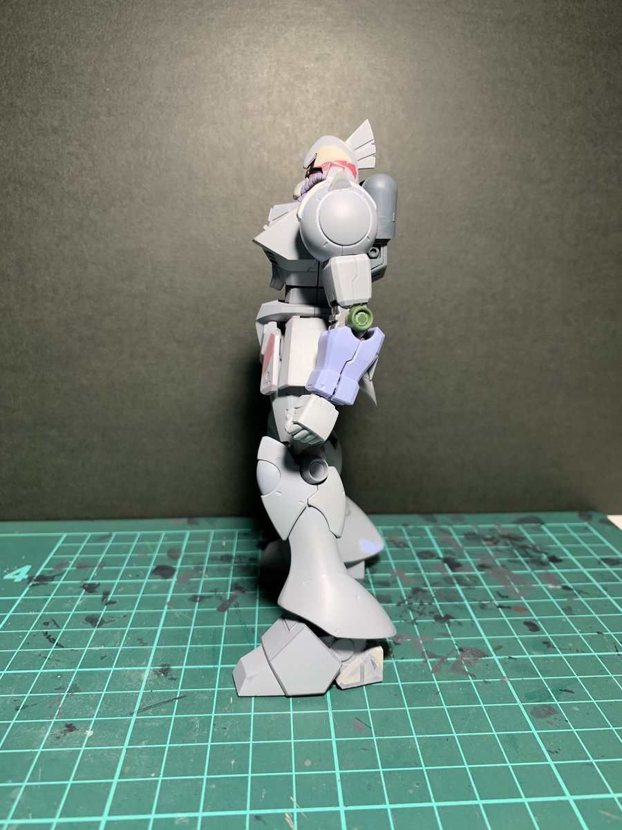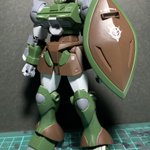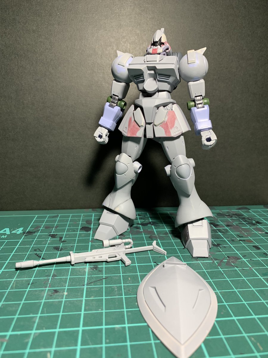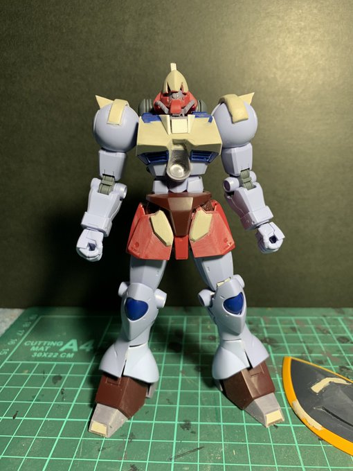 ガルバルディα。 捨てサフ後のキズ消し作業中です。 シールドの覗き穴の位置変更も行いました。
