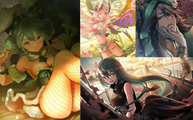 #今月描いた絵を晒そう 半端な絵も押し込んで4枚! 突然風景描いたり雑多に描くのに見てくださってありがとうございます🤗💕 私なりにのんびり模索中です 下段配色一緒…多分こういうの好きなんだなという発見がありました