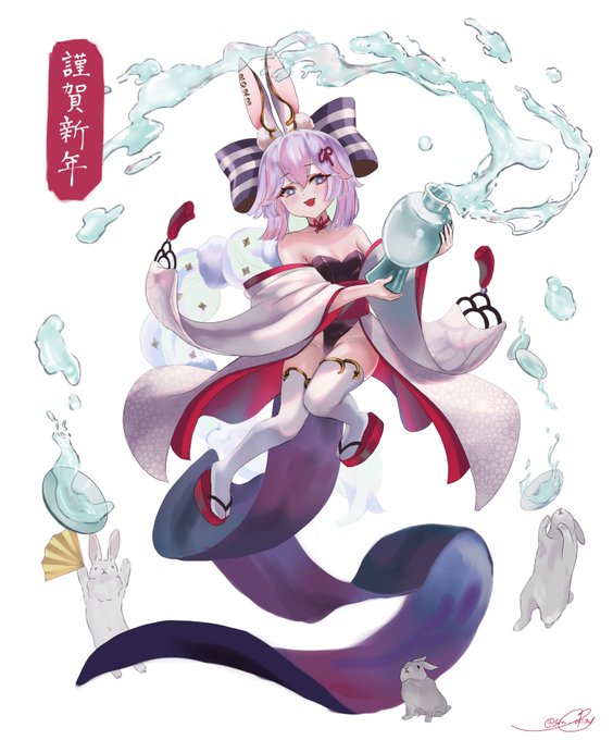 あけましておめでとうございます🎍🐰⛩️🎍 今年もよろしくお願いいたします! 皆様にとって素敵な一年になりますように✨ 今年は交流をもうちょっと頑張って、Blenderの勉強して、原神ファンアートと男も描いて兎に角いっぱい描きたい!! #HappyNewYear2023 #お正月イラスト