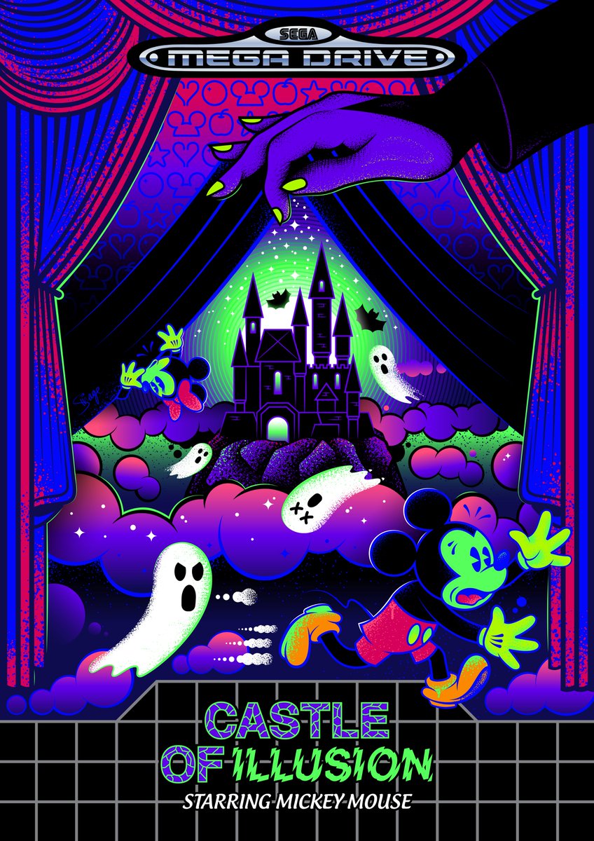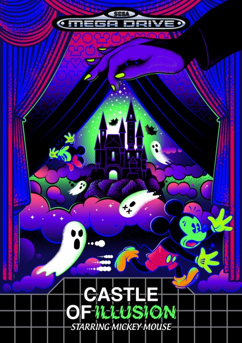 Some new spooky art: Re-imagined retro classic game cover art based on Castle Of Illusion for the Sega Megadrive! Run Mickey, run ๐ป #halloween2022 #halloweencountdown ๐ญ๐๐