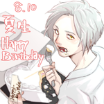 なっちゃんお誕生日おめでとう🎂 写真撮る前に食べちゃった顔ですねなっちゃん。 プレートは板チョコじゃなかったから齧ったけどちょっと残念だったねなっちゃん。 今日8月10日はハートの日🫀なんだって! #創作BL #いずれ心中するBL
