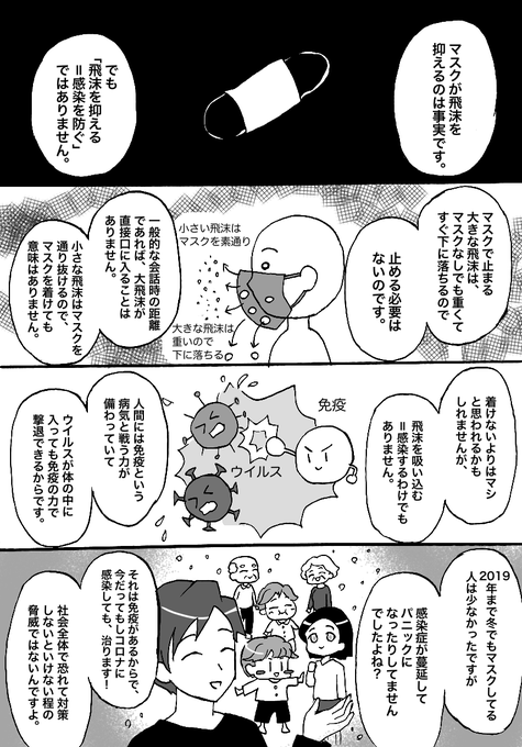 24 47 二度とマスク社会を繰り返して欲しくない。 このまま脱マスクが進んでも、マスクの効果が信じられたままでは根本解決になりません。 だからマスクで感染は防げないと、何度でも伝え続けます。 23/04/05 12:15