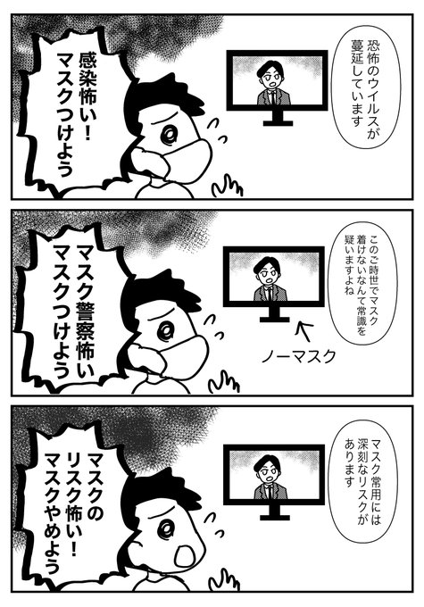 感染や人目を恐れてる人も、それ以上の恐怖があればマスクを外すでしょう。マスクの弊害をテレビで毎日流し続けるとかね。コロナだって風邪の恐怖を可視化しただけなんだから。 群集心理に流されないよう人々の意識を変えるのが一番だけど、限界もある。結局新たな恐怖が一番手っ取り早いとも思います