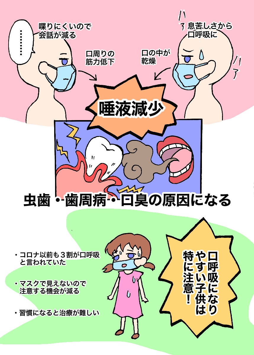 マスクは口呼吸を誘発し、さまざまな弊害をもたらします。人間の体はマスクを着けて生活するようにはできていません。健康な人が常時マスクなんておかしいんですよ。もっと弊害に目を向けて、マスク社会を終わらせましょう。