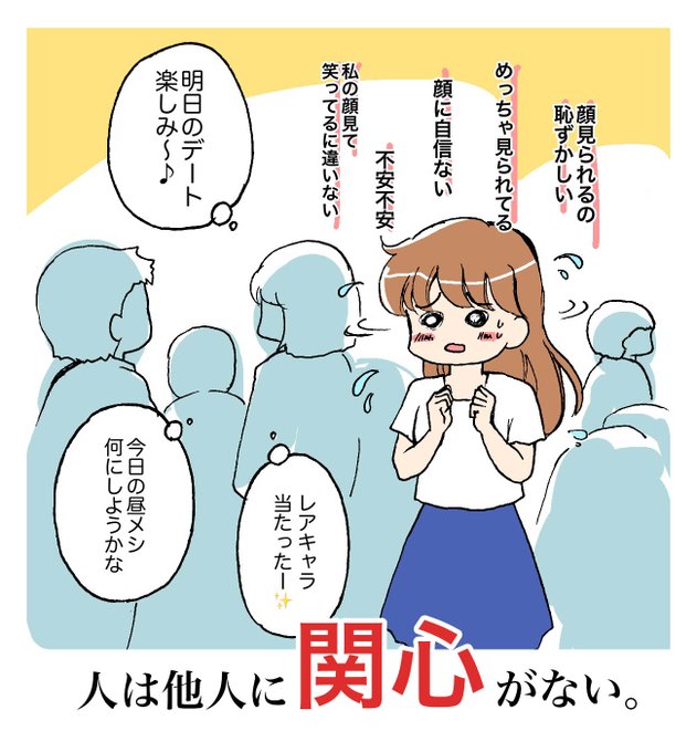 34 108 ルールは変わった。 でも、まだ大多数がマスクのまま。ルールだからではなく、周りに合わせてる人が大半なんですね。 でもね、本当に誰も見てないから。 人は他人の行動や顔なんて興味ないし、あなたも道ゆく人をいちいち眺めたりしないでしょ? 顔見られるのが恥ずかしいなんて、自意識過剰ですよ 23/04/16 11:33