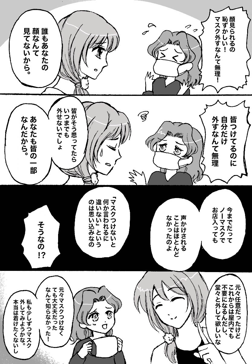 今だって屋内でマスクつけなくてもなーんにも起こりませんよ。 マスクを着けてるのは、顔見られるのが恥ずかしいとか化粧が面倒とか内向きの理由ばかりで他人のマスクの有無に注意を払ってる人なんていないから。 ノーマスクでも何も言われず普通にお出かけできるので安心してください #マスク不要