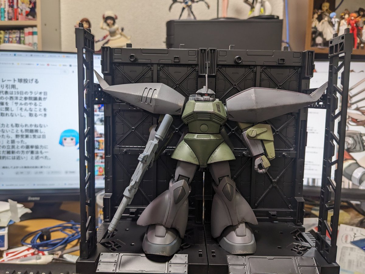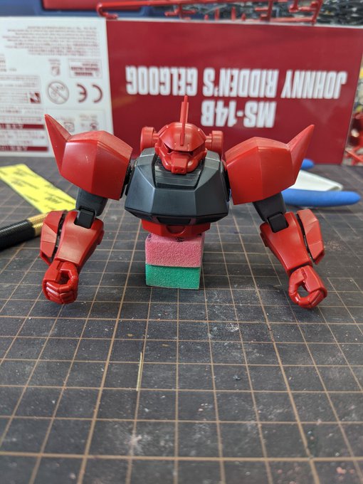 ジョニー・ライデン専用高機動型ゲルググ完成。 いつもどおり後ハメ加工のみのほぼ素組したあと、塗装とデカール、ウェザリングで艶消しで完了。 作業してる時はもうちょい手を入れよう思ってるんだけどなぁ。 #ガンプラ #ガンプラの画像を貼るとRTされると聞いて #hobbyspace36
