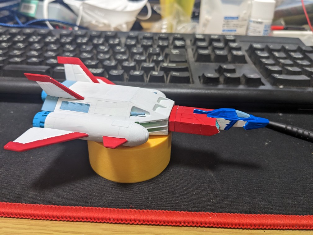 今年1つ目の完成のコアブースター。 初めてアクリルガッシュで筆塗りしてみたけど、塗り分けにマスキングはちゃんとしたほうがいいね。 あと塗り方が雑いわwww #ガンプラの画像を貼るとRTされると聞いて #ガンプラ