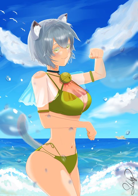 初めてのけもみみ挑戦してみました。8月ももう終わりですが、水着絵です。海行きませんでしたが、絵で満喫してます😌かわいいと思っていただけたら幸いです😍 #イラスト #絵師 #絵柄が好みっていう人にフォローされたい