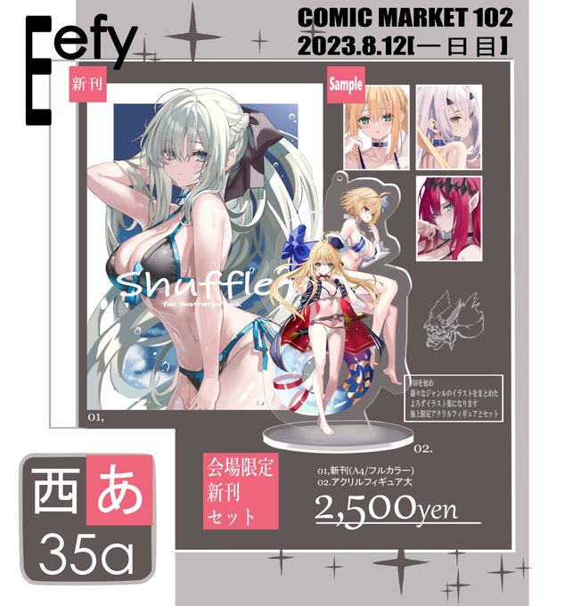 #C102 コミックマーケット102のお品書きになります! FGOはじめ他ジャンルを含めたよろず本と会場限定グッズのセットとなってます!! 1日目 8/12(土)西あ-35a 【Eefy】にてお待ちしております!!! メロンブックス様の方でも新刊書店予約中です melonbooks.co.jp/detail/detail.…