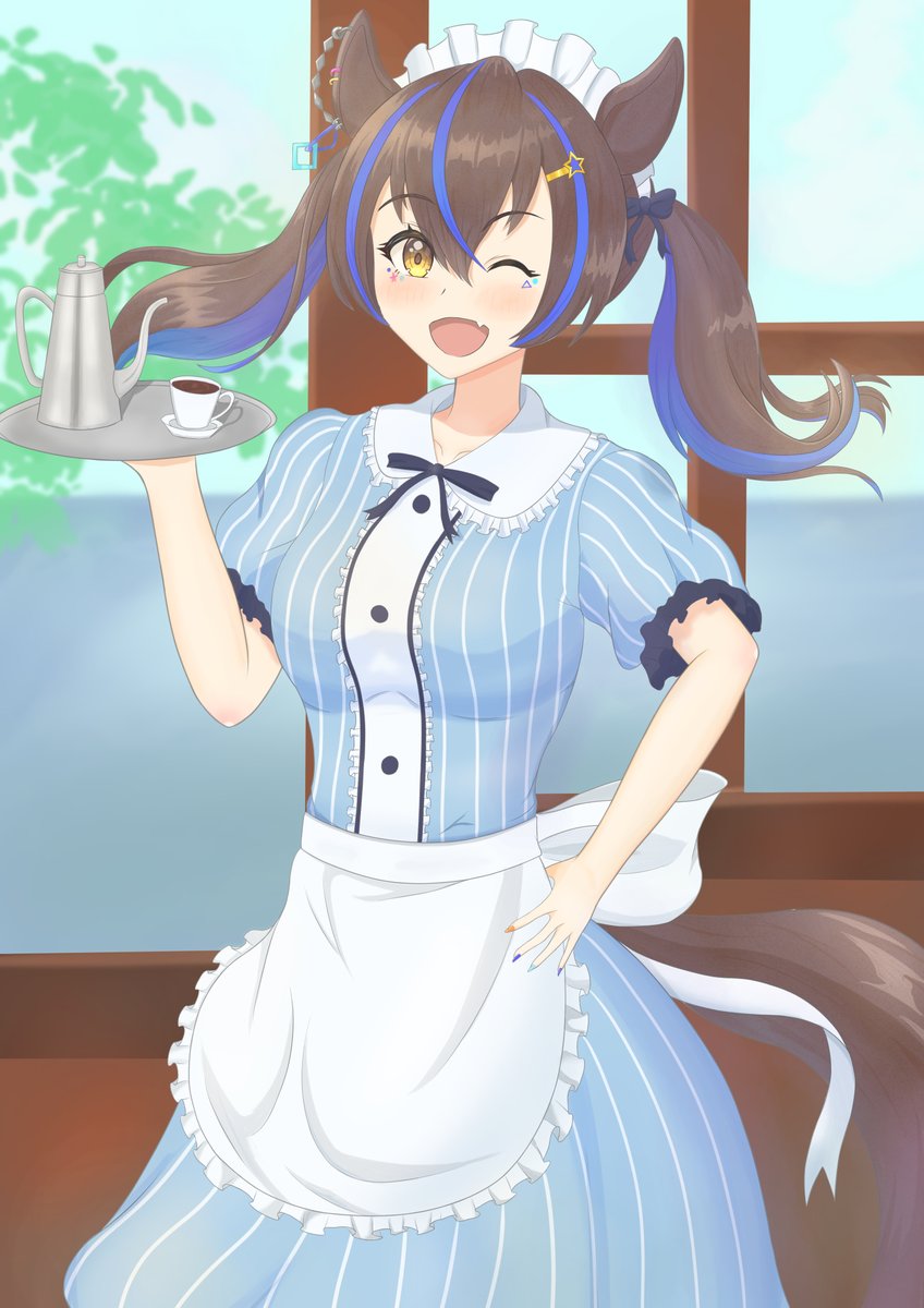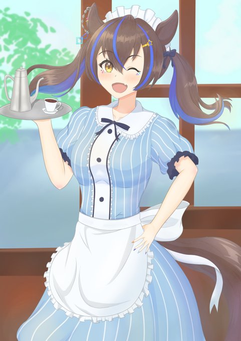 中の人つながりで描いた女神のカフェテラス衣装のヘリオス! #ウマ娘 #ダイタクヘリオス #絵柄が好みって人にフォローされたい