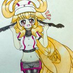#自分の代表作だと思う絵を一枚だけ選んでみよう 何度もになっちゃうけど、やっぱりこのメンガタちゃんだね。 お顔とポーズが絶妙に僕のハートに刺さってる。 あと太ももえっち。