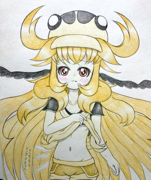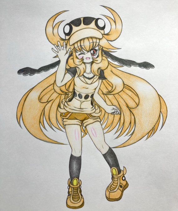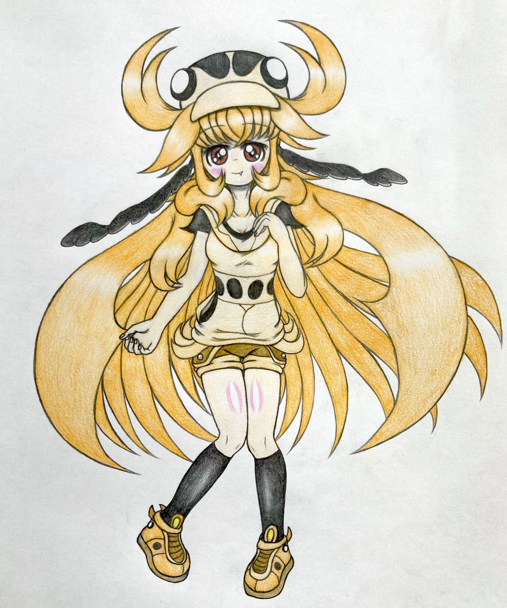 7 16 メンガタちゃんに手でハートしてもらった。 「お兄ちゃん、はいっ♡」 #しんせいの甲虫擬人化集 #アナログイラスト 23/08/14 18:30