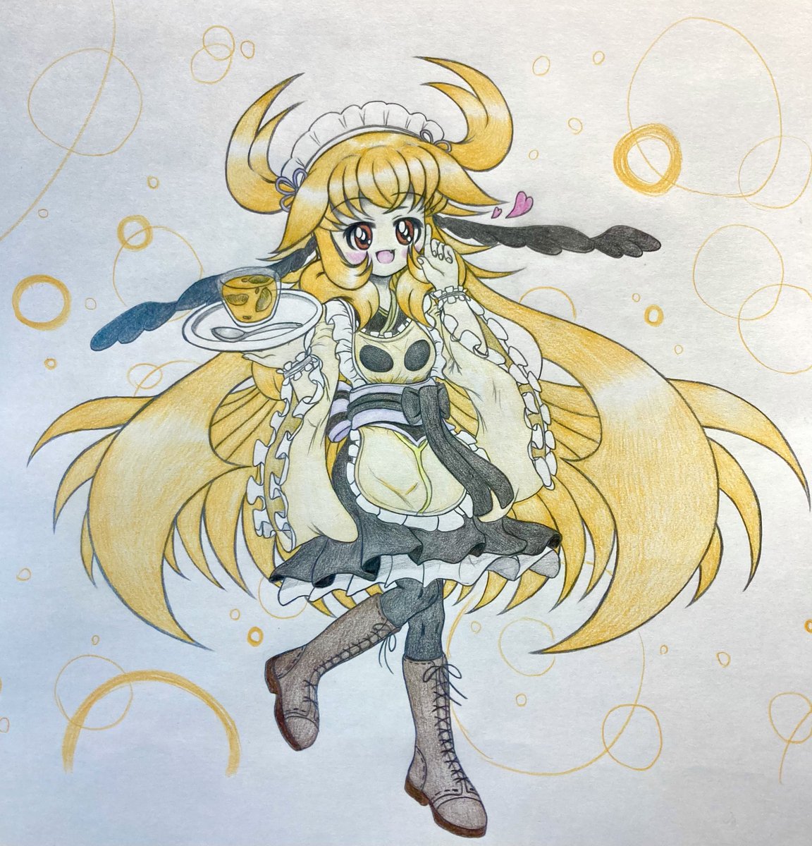 メンガタちゃんに手でハートしてもらった。 「お兄ちゃん、はいっ♡」 #しんせいの甲虫擬人化集 #アナログイラスト