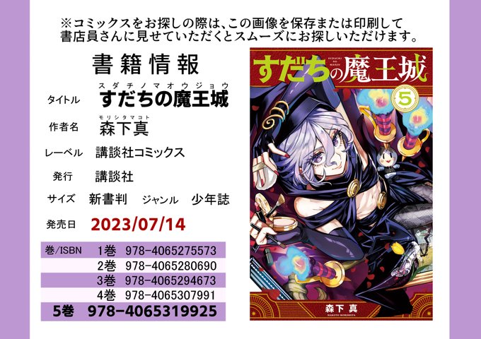 \🌹本日発売🌹/ 『すだちの魔王城』単行本第⑤巻本日発売されました‼ 描きおろしおまけ漫画あります! 本紙派、マガポケ派、ニコニコ派の方も、この機会に是非宜しくお願いいたします‼ Amazon➡ amzn.asia/d/2Yrc1rU 各書店様の在庫情報はこちらです!➡kc.kodansha.co.jp/product?item=0…