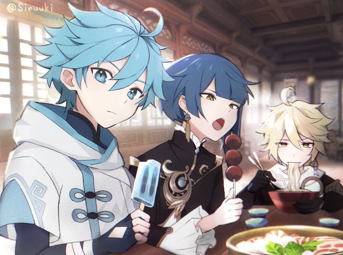 On a date with the prettiest boys of genshin 🍜🍢✨ #GenshinImpact #xingyun #aether