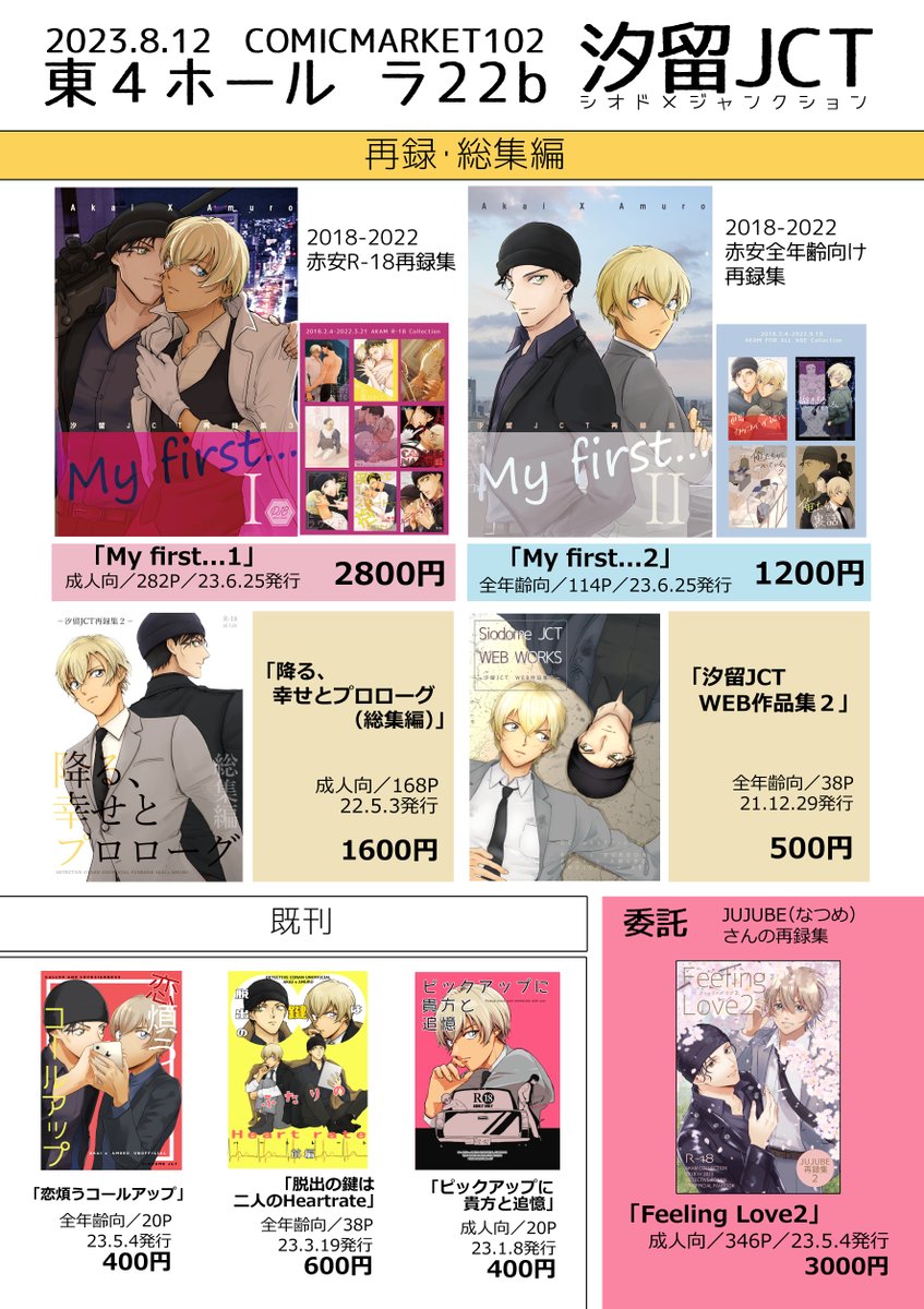 8月12日 COMICMARKET102 東4ラ22b「汐留JCT」おしながきです!🙌 なつめさん(@ntm_002)の再録をお預かりしています😊👍 冬は出られないので、暫くコミケ出ないなぁと思うと寂しくもあり…来られる方は暑さ対策万全で楽しみましょう~!サンプルリンクはpixivに纏めてます🫱pixiv.net/artworks/11059…