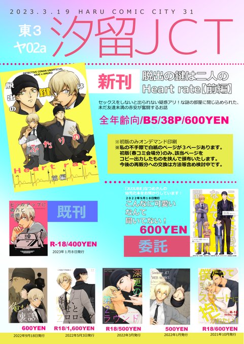 🌸HARU COMIC CITY31 おしながき🌸 📍東3ホール ヤ02a「汐留JCT」 pixiv.net/artworks/10632… リンク先(pixiv)に各サンプルへのリンクがあります。 なつめさんの幼児化本をお預かりしています!