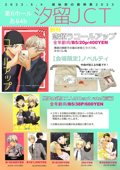 【5/4超秘密の裏稼業2023】おしながき | シオドメ pixiv.net/artworks/10775… おしながきアップしました!各既刊のサンプルはpixivからご覧ください。 ⚠️会場限定ノベルティつきは数に限りがあるためお一人様2つまでとさせていただきます。 ⚠️ツリーに「脱出の~」交換について記載します。