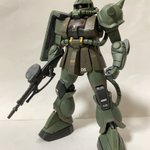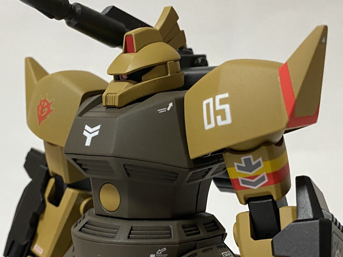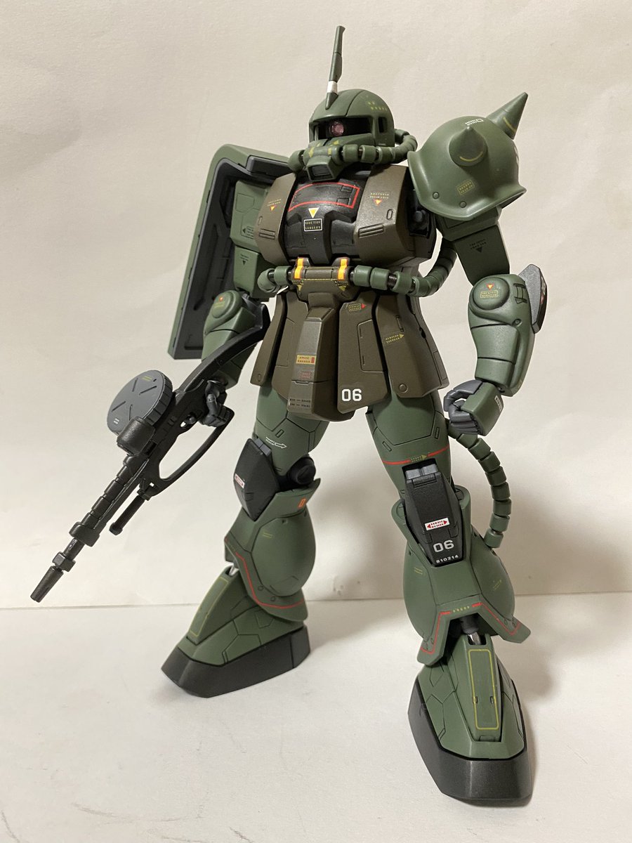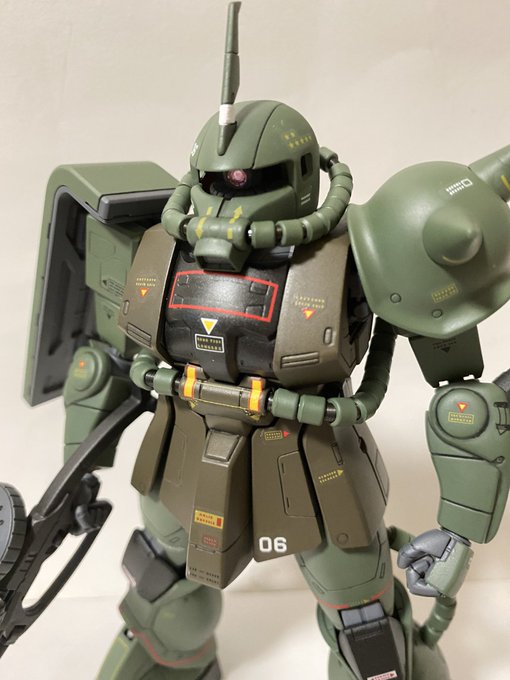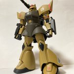 MS-06GD 高機動型ザク 地上用 エグバ機 完成しました スパイクアーマーの合わせ目消しとセンサーをクリアパーツに置き換えた以外は素組みです とにかくデカールが大変だった… 格闘戦も行う地上用MSという事で強めにウェザリングしました #ガンプラ #ククルスドアンの島