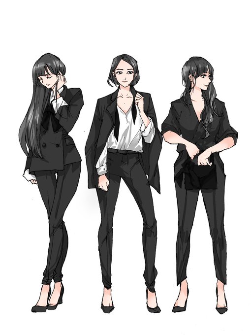 修正して色塗った 真夜中に大人の美しさ全開かつ黒髪が映える黒スーツパンツスタイルのperfumeをお届けします