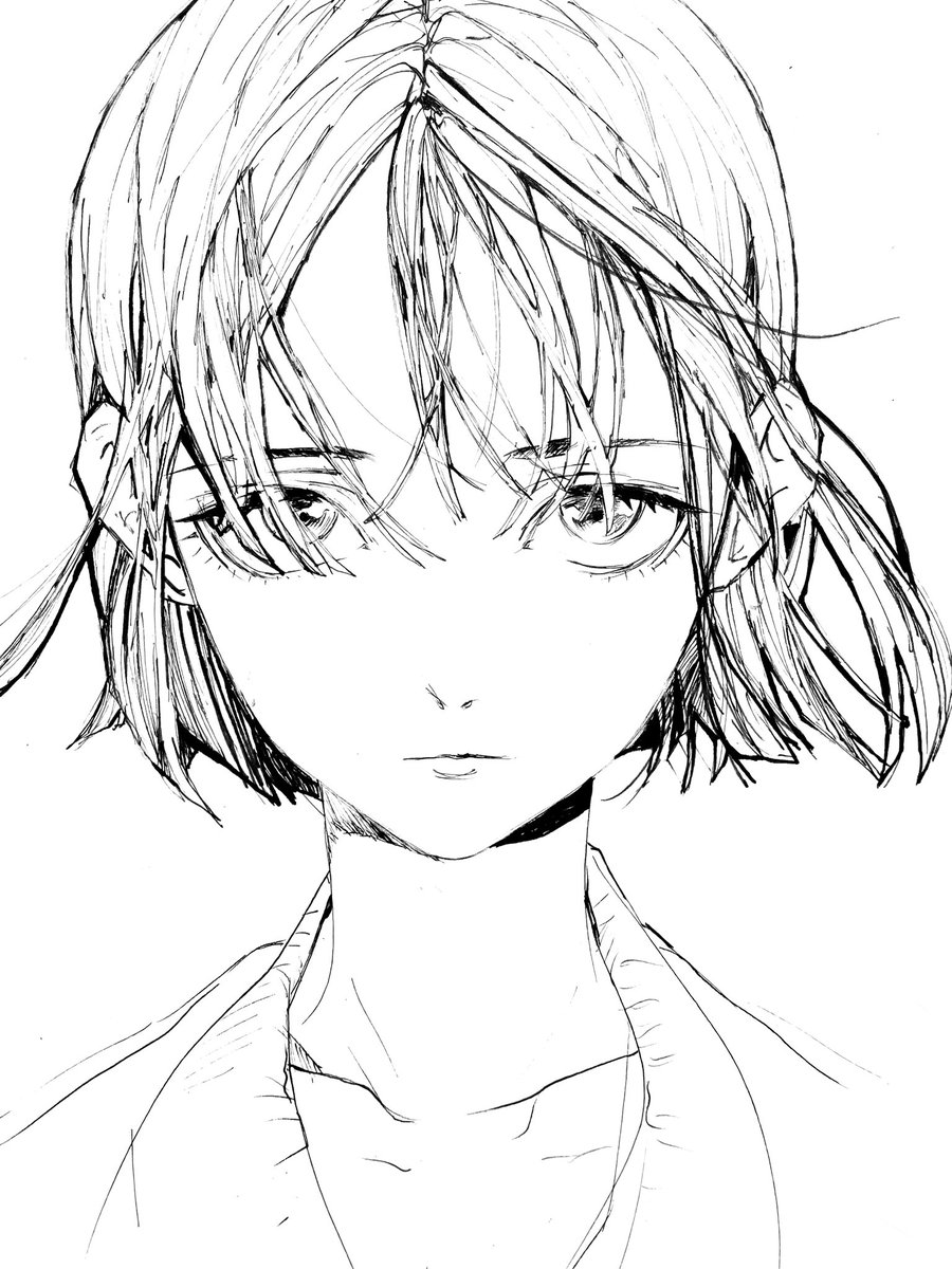 2 4 久々の創作 伏目がちなまつ毛+潮風にゆれてそうな前髪+ショートカット耳掛け を描いてみたかった 23/05/13 15:40