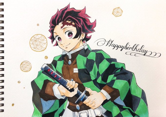 炭治郎✨お誕生日おめでとう🎉 誰よりも優しくて、強くて、太陽のように暖かい貴方が 本当に大好きだぁ!!✨ たくさんの幸せが訪れますように #竈門炭治郎誕生祭2021 #竈門炭治郎生誕祭2021 #模写