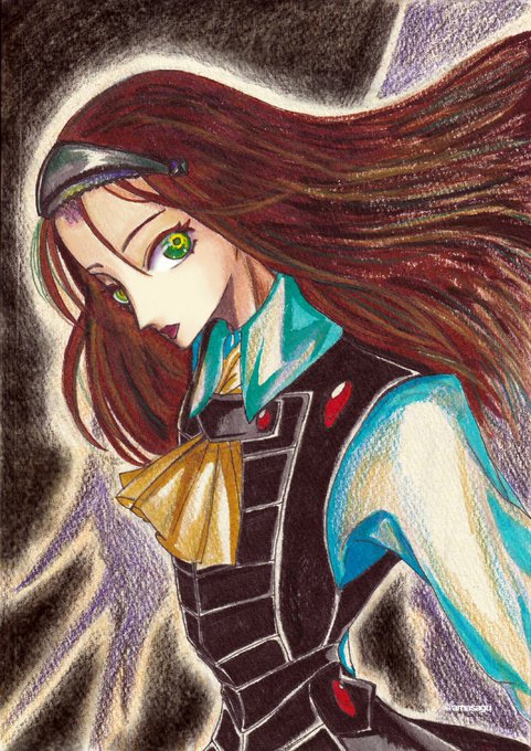The Five Star Stories よりカレン 好きです 単行本中扉に描かれているイラストを御手本に このスーツ下どうなってんだろ #模写 #ファイブスター物語 #五星物語 #thefivestarstories #色鉛筆 #イラスト #私の絵柄のいいところが聞きたい #イラスト好きさんと繋がりたい #coloredpencil