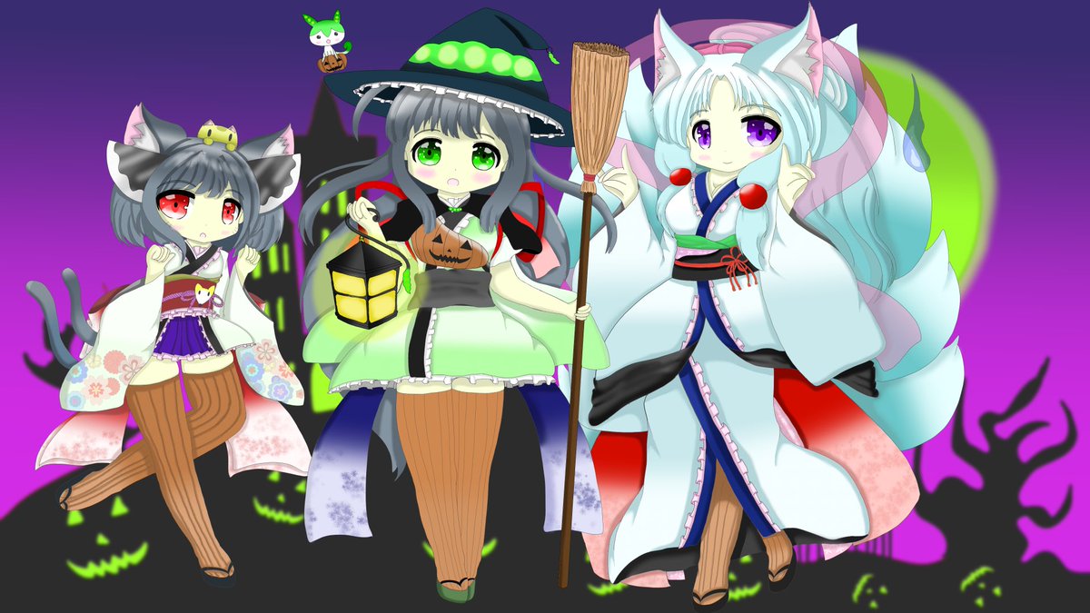 #東北ずん子 #東北イタコ #東北きりたん #ハロウィンイラスト