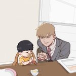 フードコートでみた親子がかわいかったので師匠とモブくんで描いた絵です
