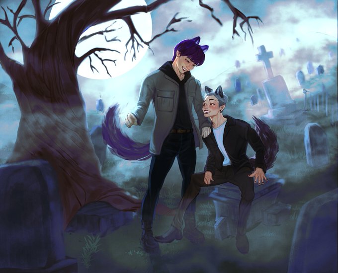 Happy Halloween to my #SecretSTAYspookster2022 @Bblue_Qwq !! I hope you enjoy werewolf minlix chillin in a graveyard!! <3🐱🐤 #Straykidsfanart