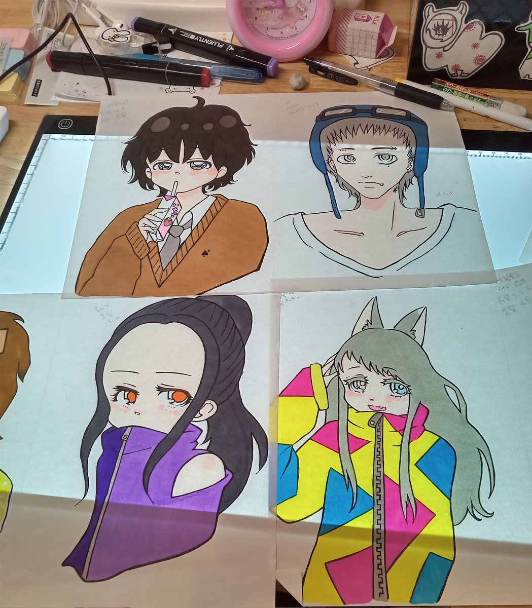 念願のトレース台で過去絵をうつして 縮小コピーしてシールやステッカーにします!!!! #匠彩 #イラスト #オリジナル #トレース台めっちゃ薄い #そしてトレース台めっちゃ明るい #テンション上がってる