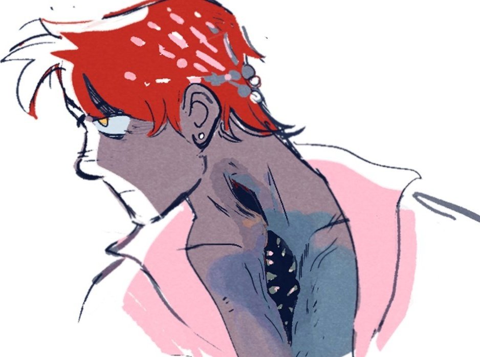 the original concept before i switched into that lol,,, harrows a ~ runaway bride ~ and gideon is the unlucky waiter on her smoke break