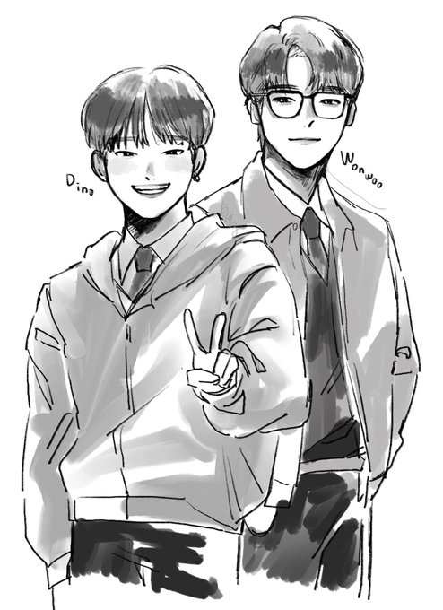 ホシさんとウジさん、あまり描かないので楽しかったです! #seventeenfanart