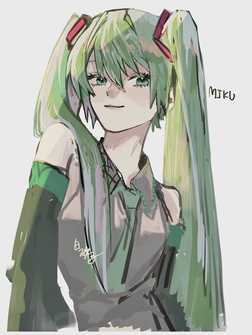 初音ミクさんを描くと自分の絵がわかるよとフォロワさんに言われたので描いてみた、オタクの恐ろしいところは何も見ずにミクさんを描けてしまうところです🥲