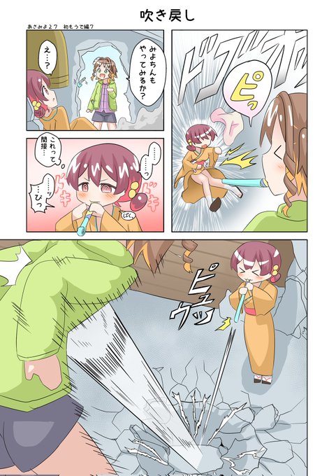 58 257 吹き戻しで遊ぶあさひちゃんとみよちゃん #おにまいお絵描き #おにまい 23/05/12 09:01