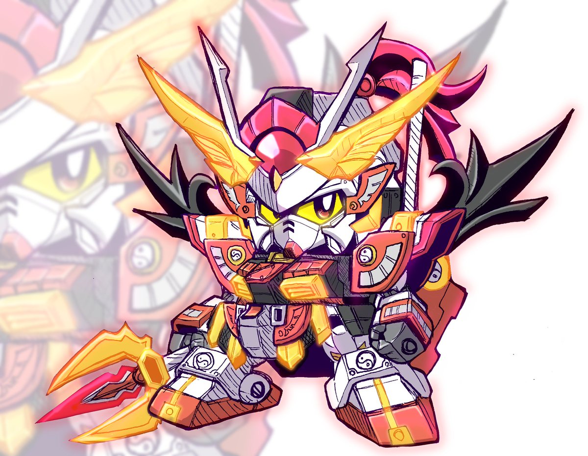 #sirenの落書き帳 #ラーガンダム 「武者魂、必ずや体得してみせる!」 武者ラーガンダムこと日輪丸! 武者頑駄無と武者魂に憧れて武者の国にやって来た若者。 二本の槍、イザナギとイザナミを使った戦いが得意。 額の日輪石から太陽の力を得る事が出来、太陽が出ている時はパワーアップする